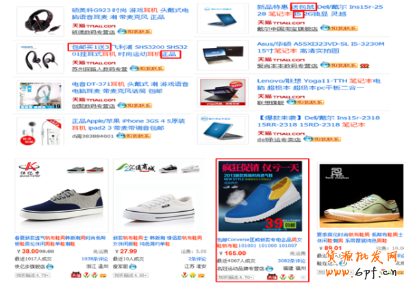 當買家搜索的時候,首先看到的不是詳情,而是先看到搜索展示出來的結果頁,里面包括寶貝圖片,標題,店鋪DI等等(如下圖),有展示才有被點擊的機會,才有可能被購買的可能,而如何在展示頁面吸引買家眼球,從而點擊,這就是我們要講的第一部分——展現轉化,展現轉化可分為幾個小點進行展開。