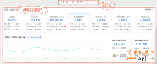 店鋪實時數據、商品實時排行、店鋪行業排名、店鋪經營概況、流量分析(流量構成、PC端與無線端的流量來源、入店關鍵詞)、商品分析、交易分析、服務分析、營銷分析、市場行情,為你展示店鋪經營全鏈路360度無死角的核心數據分析!
