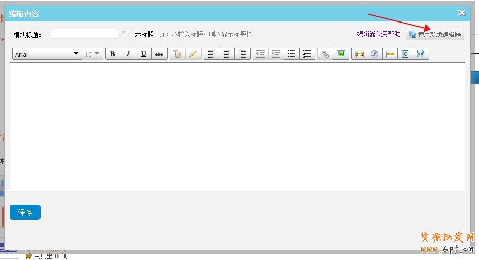3、如果您是新手賣家,從來沒有使用過自定義內(nèi)容區(qū)編輯器,或者可以隨意更換目前老版自定義編輯器內(nèi)的代碼,建議大膽使用新版編輯器,如下圖所示,點擊“使用新版編輯器”即可完成升級。
