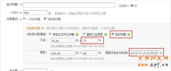 填寫編輯“訂金比率”、“尾款開始支付時間”(如下圖),發布寶貝即完成了。