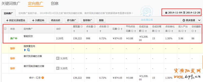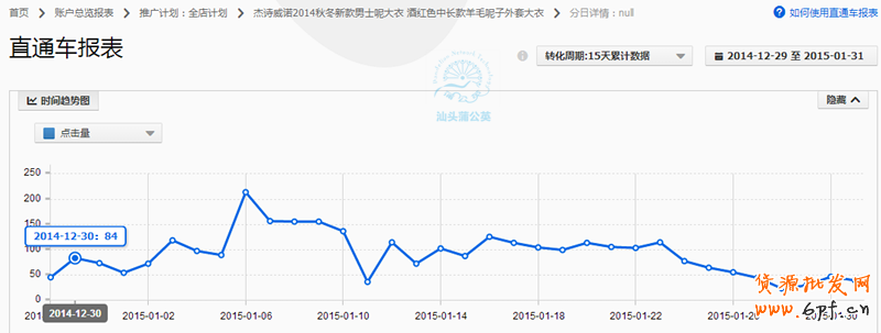 (下圖為該寶貝2014.11.05-2015.01.31定向通投數(shù)據(jù))