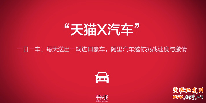 天貓*汽車:搶紅包已經(jīng)變成了基本款,搶豪車才是王道。天貓將聯(lián)合汽車商家提供進(jìn)口跑車。上天貓,搶汽車。