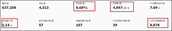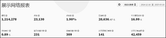 截取了部分的數據,從定向上是種子和自主店鋪,在點擊率上做的是不錯,茶葉行業整體平均CPC在1塊左右浮動,我們店鋪的cpc還是很不錯的。特別需要說的,鉆展在剛開始投放的時候是沒有點擊回報率、展示回報率、訂單金額的,這都是投放了一段時間,才開通的,這樣我們在分析鉆展數據就更詳細了。