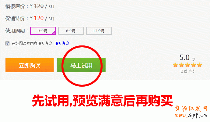 市面上很多模板都能免費試用的,對于不需要經常裝修旺鋪的,一般來說購買一年的比較實惠,但在購買之前一定要試用一下。