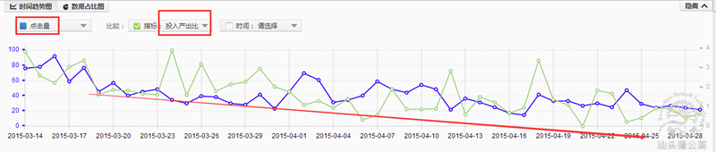 首先,直通車轉化下滑,我們第一時間是檢查行業,假設你賣的寶貝具有季節性影響,那更要查看行業趨勢,搜索多幾個寶貝核心詞看行業趨勢,根據行業趨勢來對你直通車調整是否減少無效花費。