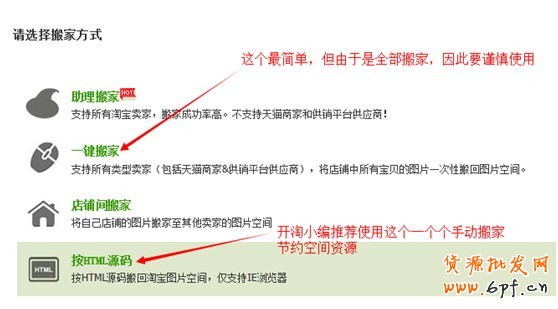 3.選擇搬家方式,使用“html源碼”,按照不同的用途新建不同的文件夾用來保存搬過來的圖片,即使在安裝后感到不滿意,也可以直接刪除