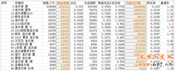 1、選擇“連衣裙夏2015”做為主要競爭關鍵詞,原因是雖然它的倍數是0.02227,沒有關鍵詞“連衣裙 夏”0.094704 和 “連衣裙 夏季”0.041052高,但是 “連衣裙夏2015”這個詞,用分詞算法切出的詞根已大部分包含以上兩個詞切分出的詞根,切分如下(連衣裙 ,夏 ,2015)