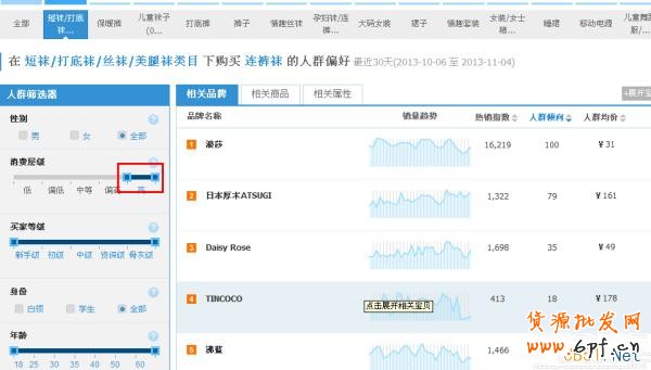 比如我賣100元左右的連褲襪,那么我的目標客戶群的就是高等層級收入的人群。