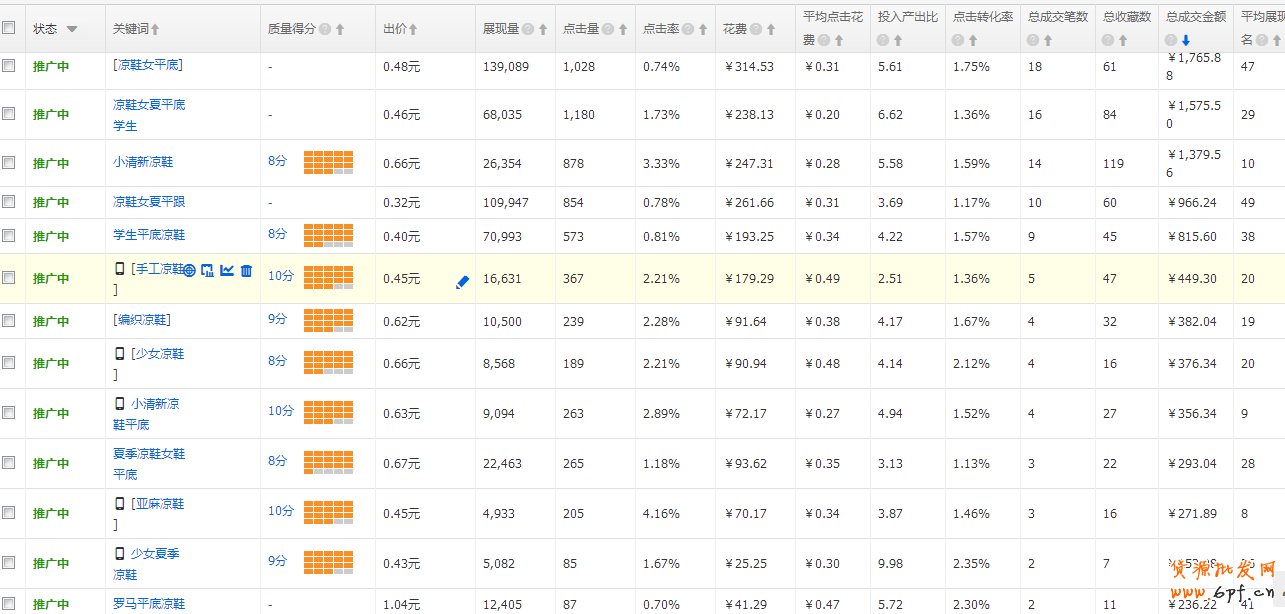 在整個推廣過程中,前期所做的就是根據寶貝屬性精準引流量,提高寶貝點擊率,穩定關鍵詞較高的質量得分,降低其平均點擊花費,然后試著提高轉化。主要是維護優化那些點擊率高、收藏高以及轉化較好的詞。