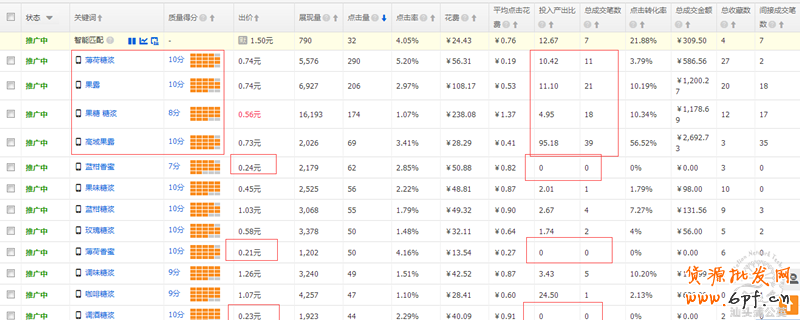 第四,對那些高花費無轉化無收藏的關鍵詞進行刪除,對收藏率低的關鍵詞也進行刪除,減少無效的消耗,然后將無效的消耗集中到那些轉化好,收藏和購物車好的關鍵詞上。