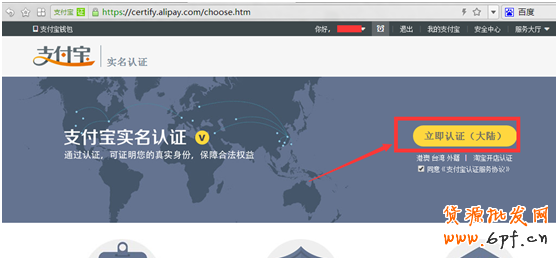 6. 我們把鼠標移動到支付寶左上角未認證幾個字上,然后點擊立刻認證,支付寶會轉跳到以下頁面,然后我們點擊立即認證