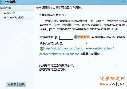 這時,店家看到圖片頁面上的支付寶系統通知還有下面的“此消息由淘寶系統自動發出”,就更加相信了是因為自己沒有交納保證金而導致的,所以馬上在頁面輸入了自己的QQ,幾秒鐘都不到,就有人加他了,說自己是淘寶小二。