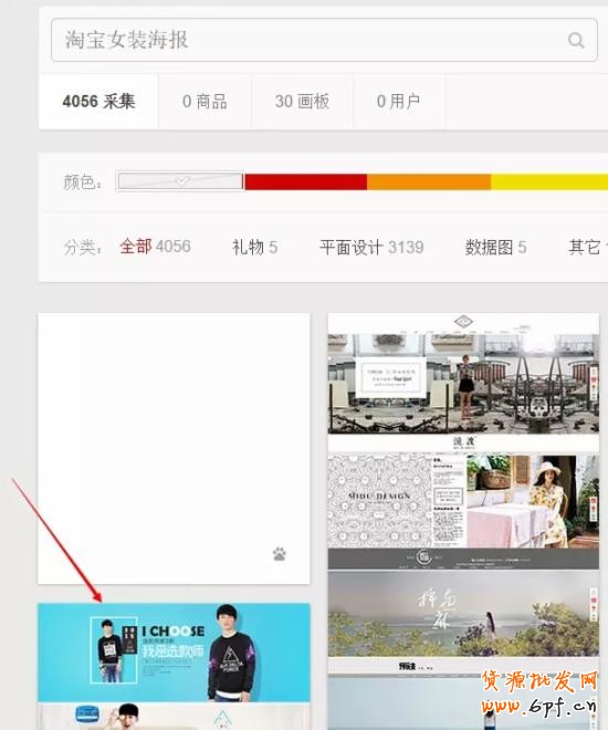 2、找圖片小編推薦:花瓣網,圖片最全、最有參考價值的一個圖庫網站。打開花瓣網,在搜索框輸入“淘寶女裝海報”,所采集的結果有4056個。