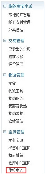 第二步:在頁(yè)面的最左側(cè)找到“寶貝管理”,點(diǎn)擊“體檢中心”;