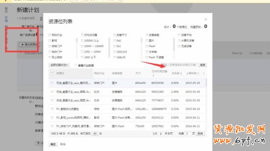 在搜索里面輸入我們已經選定好的投放資源位。
