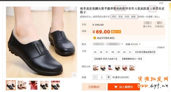 完善好寶貝標題后,關鍵詞的添加同樣以“老年皮鞋”和“媽媽鞋”為重點,其帶來的流量精準性強且轉化數據也較好。