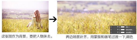 這張圖作為背景,但這里我們要把人物去掉,這里使用蒙板和畫筆做過渡,跟著調色一下。