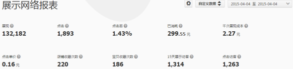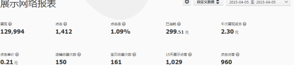 4月4日開始投放鉆展,首先要做的就是要擴(kuò)充流量,把店鋪的流量整體拉升起來(lái),所以我篩選了客戶群比較穩(wěn)定的位置,利用有效的訪客定向做全天的投放。這樣能比較有效的進(jìn)行實(shí)時(shí)的調(diào)整。通過(guò)當(dāng)天的報(bào)表發(fā)現(xiàn)店鋪和寶貝的收藏很高,但是沒有產(chǎn)生訂單數(shù)量。