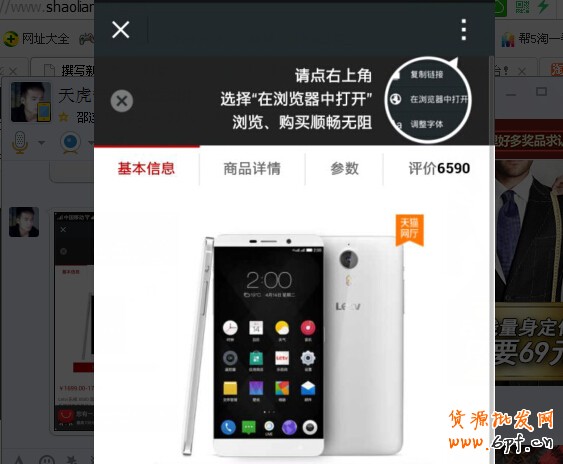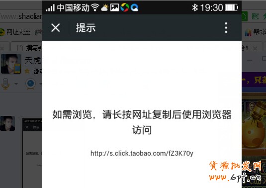 第九步,我們來看下以前淘寶客的鏈接在微信打開是什么樣子的,是打不開的,只能復制網址用其他瀏覽器打開。