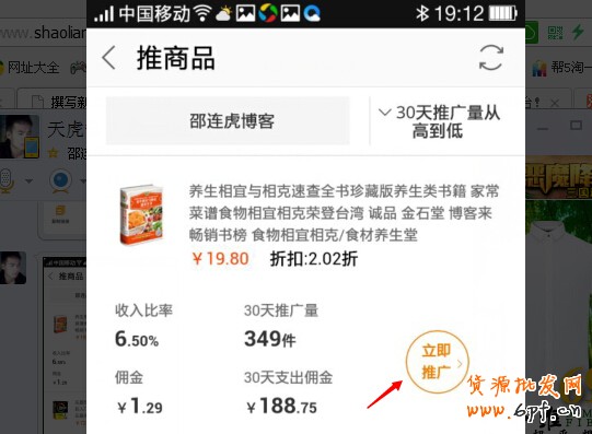 第五步,我們在推廣的時候看下產品的推廣量和傭金,如果合適就點擊立即推廣