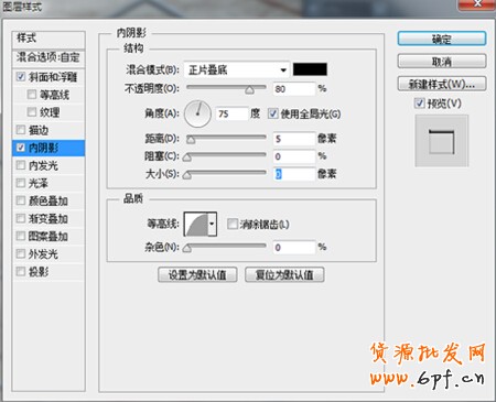 接下里,則是“內陰影”的參數設置,且看下圖: