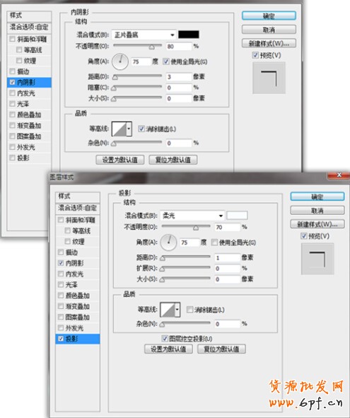 接下來,我們需要對logo復制圖層做以下的參數調整,主要也是圖層樣式參數的設置,我們先對“內陰影和投影”進行設置: