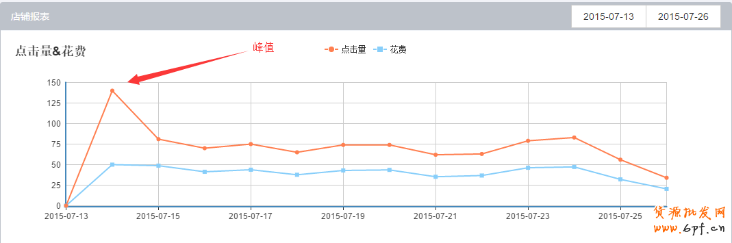 大家可以在下圖清楚的看到,7月14日的時候,花費(fèi)不變,但是點(diǎn)擊量出現(xiàn)了一個小高峰,是不是算作意外的驚喜呢?我相信,結(jié)合店里的清倉活動,銷量應(yīng)該會有一個增長的。