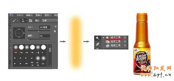 11.把瓶子復(fù)制一層,可以使用銳化工具和加深工具刻畫瓶蓋的。