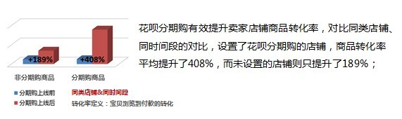 2、花唄分期還有效提升商品購買轉(zhuǎn)化率,買家只要看到分期付款,就能買到