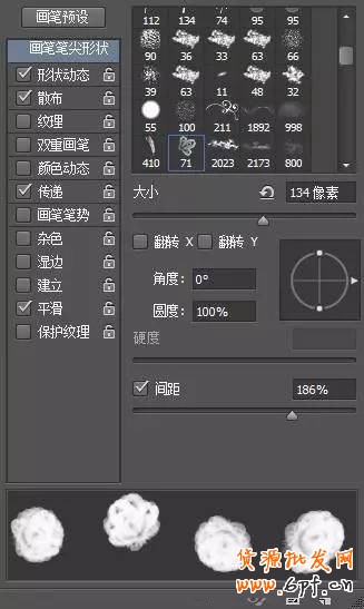 3)為了讓畫面更加自然,在散布點控制,間距控制上,可以拉開一點,如果你希望有抖動,你可以做得更多,哈哈!