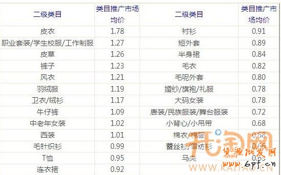 在一個品類的市場剛開始上升的時候,很多買家都是比較容易被引導(dǎo)去購買的,因為這個時候消費者可能還不知道今年的流行趨勢是什么,很多買家都不會輸入具體的關(guān)鍵詞而是進行類目搜索。所以賣家在這個時候進行類目推廣往往比市場完全熱了以后轉(zhuǎn)化率和效果會更好。掌拒請在所推廣的寶貝上都進行類目出價,出價的可根據(jù)目前各二級品類的類目推廣市場均價進行調(diào)整: