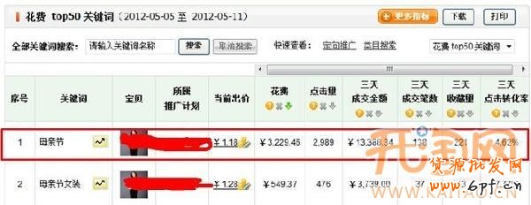 就這個一個詞7天就轉化了138筆,收藏200多,在母親節前一周,該款寶貝已經每天能銷售80筆銷量,母親節這個詞直接上了人氣寶貝排名首頁。大家在用這種詞的時候,一定要去淘寶首頁搜索一下,看看展現的寶貝都是什么類目的,如果和你經營的類目是相符的,那就用上,如果不是還是少用為妙。