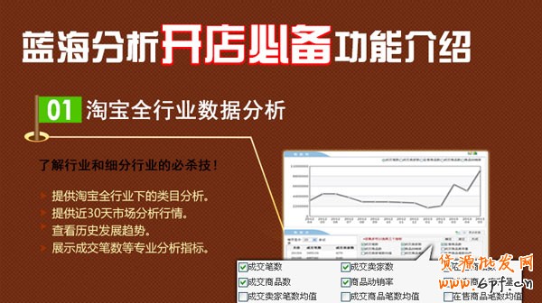 藍海分析團隊為注重數據分析的網商開發;提供行業分析、品牌屬性分析、賣家分析、找熱點行業等服務;提供功能是您發現爆款,合理定價,找準上架時間,促銷推廣寶貝及打造爆款的理想輔助工具