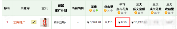 出價0.4,每天點擊量有13000個點擊,平均點擊花費0.39,定向出價0.4,就能引來那么大的流量,所以說這款寶貝的隱性質量得分非常的高。