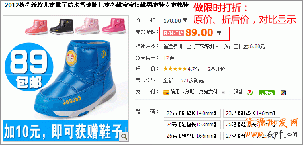 價(jià)格設(shè)置:原價(jià)按實(shí)價(jià)來設(shè)置,在原價(jià)的基礎(chǔ)上打折,打折力度要大,且限定優(yōu)惠時(shí)間,價(jià)格鮮明對比,限時(shí)打折,造成緊張感優(yōu)惠感,從而激起買家的購買欲。如圖: