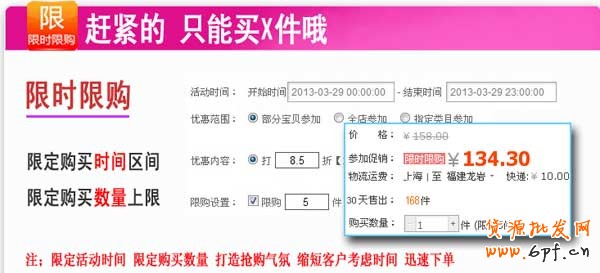 本文來源: 淘寶店鋪怎么設置限拍限購數量