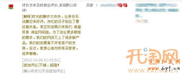 解說:我想很多親們跟我一樣,遇到這種情況,那該怎么辦呢,別急,慢慢地去關愛他,要以春雨潤物般的細膩去呵護他,并適當做推廣。很多顧客不久之后都來追加評論了,這樣又增加了你的店的信譽了。