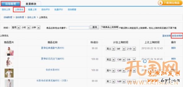 7.上架計(jì)劃都制定好了之后,可以在查看排期表里面找到。點(diǎn)擊:自動助理→上架優(yōu)化→查看排期表