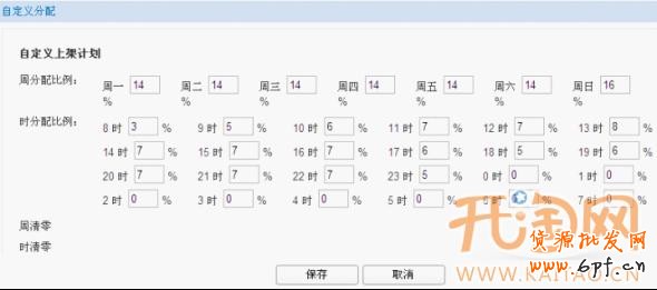 6.或者也可以選擇“自定義分配”,按照寶貝占比來設(shè)置上架時間。如下圖: