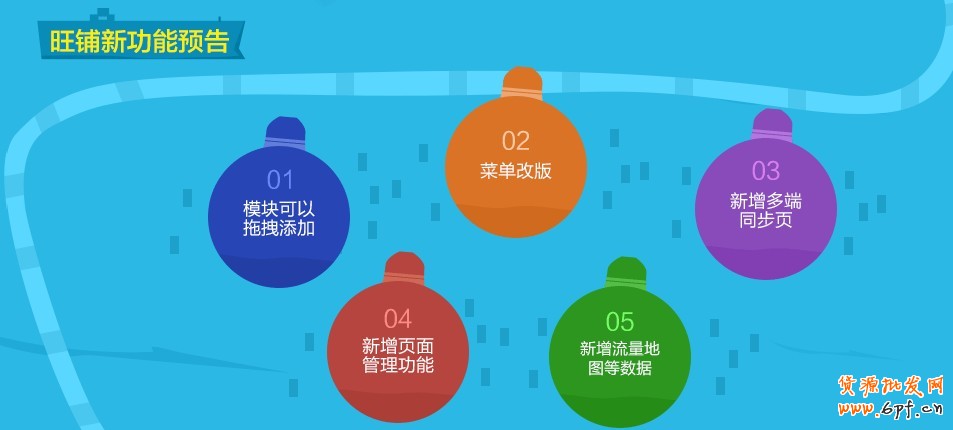 旺鋪本期的新功能主要有: 1、模塊拖拽,智能識別可添加的區(qū)域 2、模塊移動,按住模塊可自由上下滾屏移動 3、頁面管理,可方便地對所有頁面進(jìn)行增、刪、設(shè)置 4、多端同步頁。