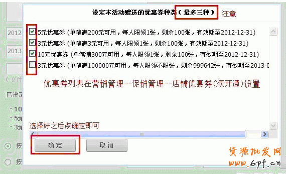 我們上一步已經提前設置了優惠券,所有我們進行第二項的選擇進行設置活動。其他的兩項同樣的方法。