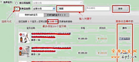 選擇寶貝的界面都比較簡單,找到你要參加活動的寶貝,在右邊選擇操作就好了,全部設置選擇正確之后別忘記點確認,彈出下面的頁面,即創建活動成功了.