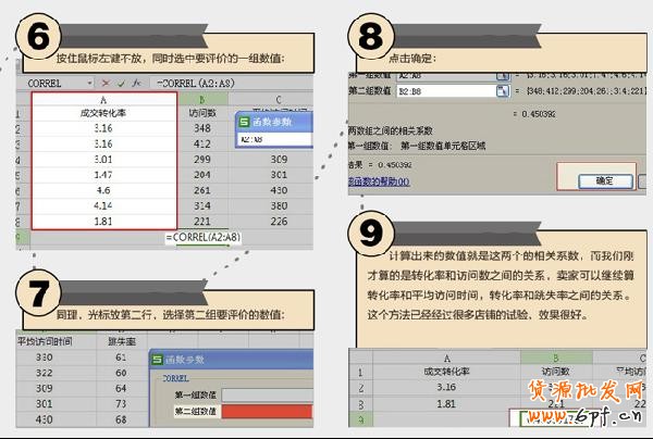 這里教大家一個Excel中的CORREL函數,可以用賣家自己店鋪的數據,用這個函數來分析問題。這個函數就是用來確定兩組數值之間到底有沒有關系,有多大關系。