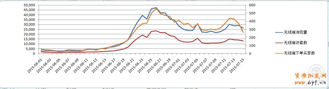 Ppc經過幾天的波動之后就一直穩定并且是低于行業市場平均出價的,無線端的流量在穩定上升,占比最多,主要的操作是避開pc端關鍵詞的競爭,加大無線端推廣測試;引入更多的無線端流量進行測試效果反饋,在關鍵詞的質量得分普遍比較高的情況下,拉低時間折扣的同時加大無線端和站外的投放力度,控制pc端的流量同時,加大無線端流量促進轉化,拉低整體的ppc,提高點擊率,引進更多的流量。