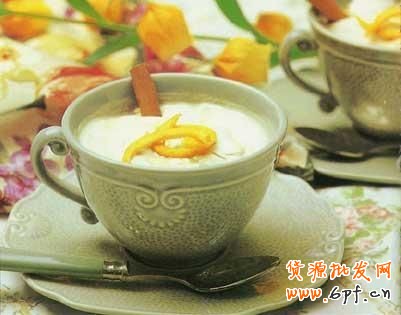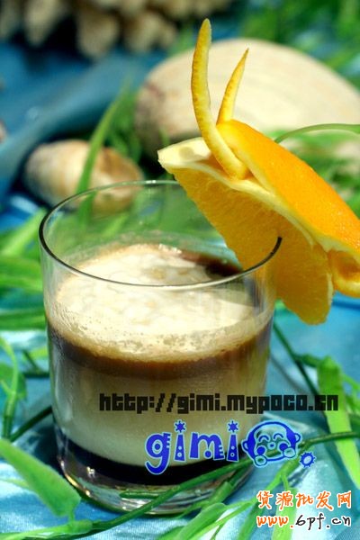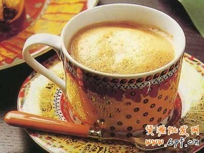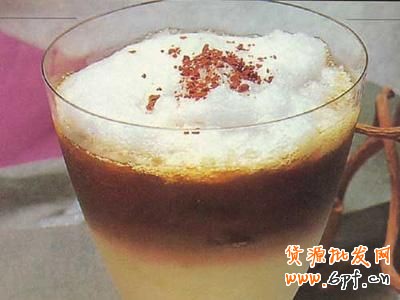 配制方法:在奶盆里倒入研細的深煎炒咖啡和肉桂等香料,攪拌均勻,然后倒入鍋里,加些水煮沸3次,從火上拿下。待粉末沉淀后,將清澈的液體倒入杯中,這時慢慢加入橙汁和蜂蜜即成。