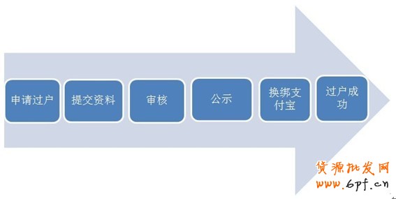 申請過戶――提交資料――審核――過戶公示――換綁支付寶――過戶完成