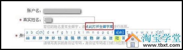 如果您的真實姓名中含有生僻字,在您填寫認證信息的真實姓名時,請點擊“點此打開生僻字庫”。