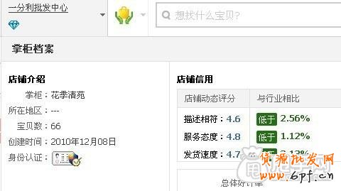 這里小編提醒大家要注意淘特萊斯的動態評分是一段時間內客戶評分的一個平均值。因此每一個參加評分的客戶的打分都會影響這個平均值的大小。當然,動態評分我們可以直接在店鋪首頁的掌柜檔案中查到,只要把鼠標放在店鋪首頁掌柜檔案里的相應動態評分上就可以看到下圖: