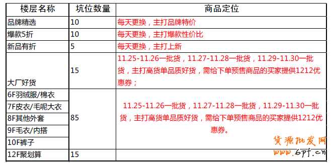 貨品:30%TOP商家商品(招商,非1212場內、場外商品)+70%腰部商家商品(不招商);