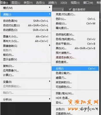 5、使用菜單欄的“圖像”--“調整”--“反相”命令